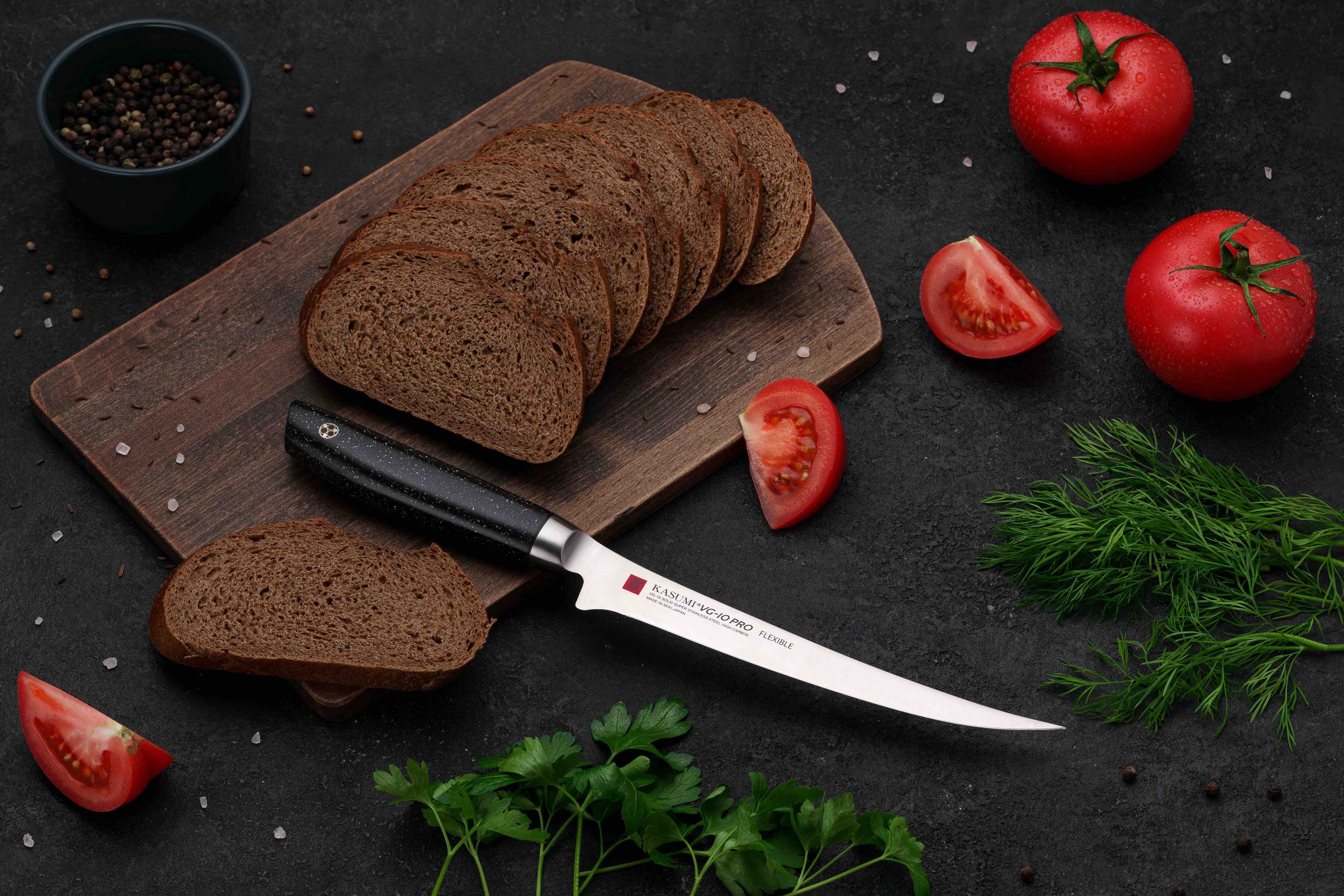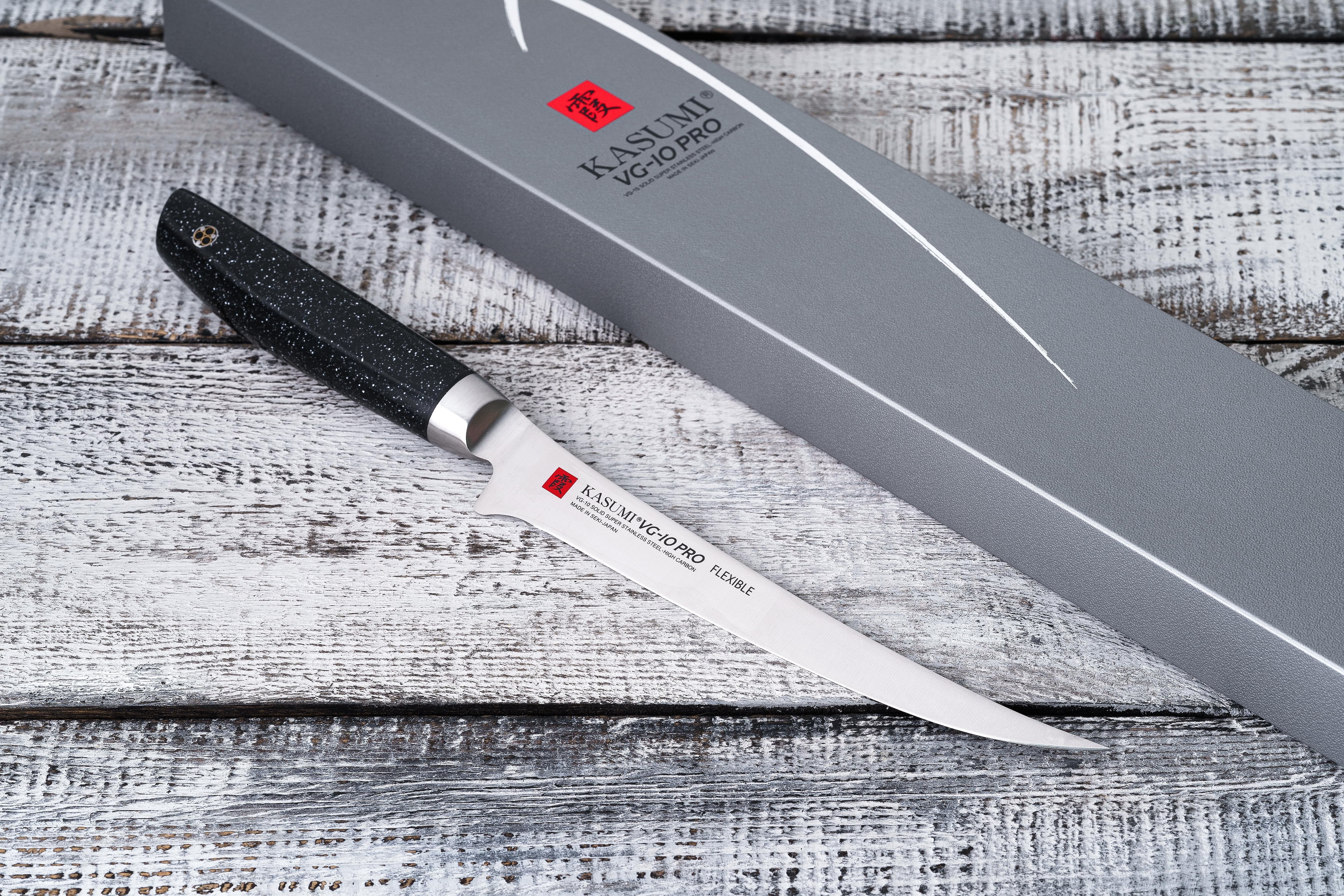 霞KASUMI VG-10 PRO包丁は他の霞KASUMIシリーズの開発・製造を経て蓄積した技術を結集し企画された最高峰なるプロ仕様包丁シリーズです。包丁用に特別に開発された武生鋼材 超硬質合金鋼V金10号の100%無垢材使用による強靭なブレードに卓越した技術を持つ職人による本刃付けが施されており、他の包丁に類を見ない切れ味と持続性を持ち、末永くお使い頂けます。 柄部には人工大理石が使用され衛生面且つ耐久性に大変優れています。